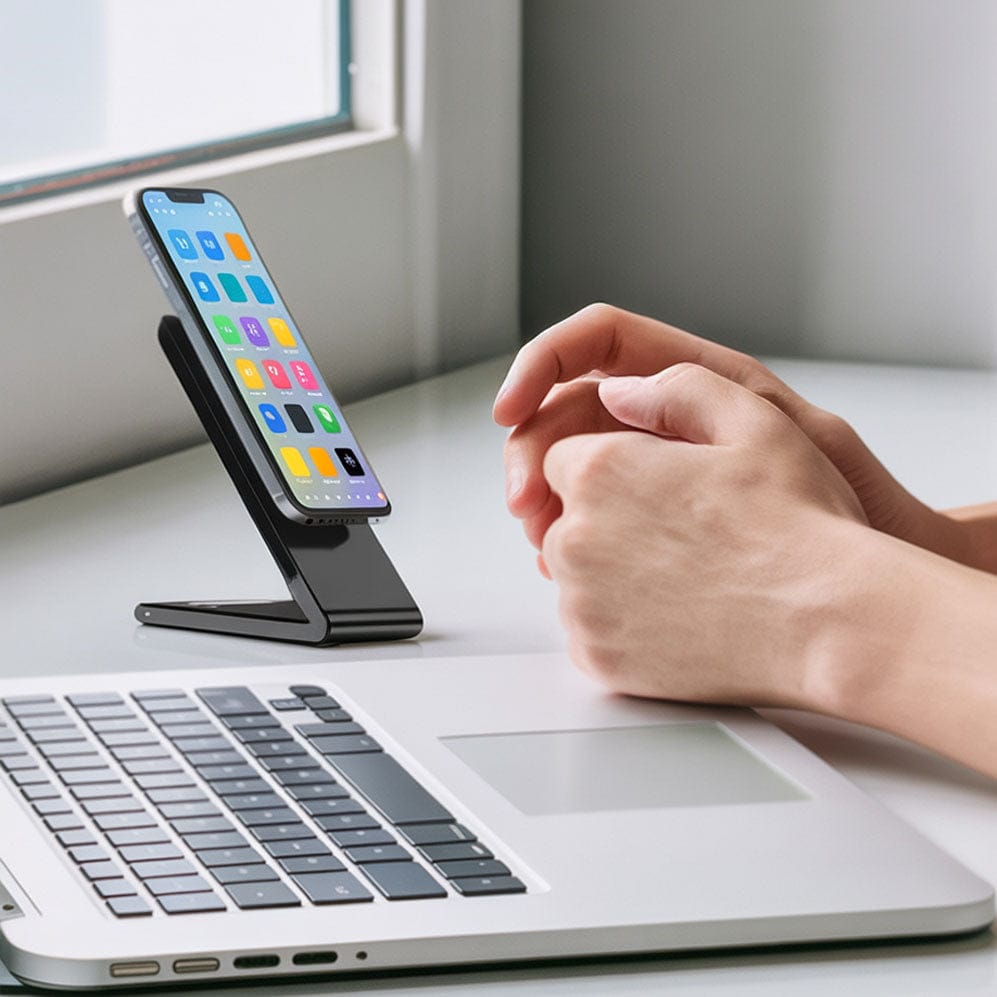 The DeskCharge keeps your phone visible and at the perfect viewing angle while it charges. Flat pads require you to lay your phone face-down, meaning you miss notifications and have to pick it up constantly to check messages. With the DeskCharge, everything stays visible at eye level while your phone powers up.